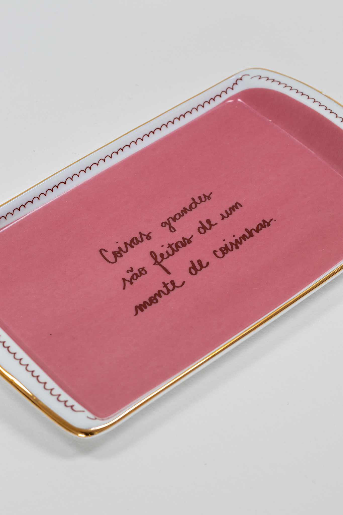 "coisas grandes são feitas de um monte de coisinhas" essa é a frase inspiração estampada na bandeja coisinhas. um tom de rosa lindo, friso e detalhes em dourado dão vida a nossa bandejinha e a tornam aquele mimo irresistível.