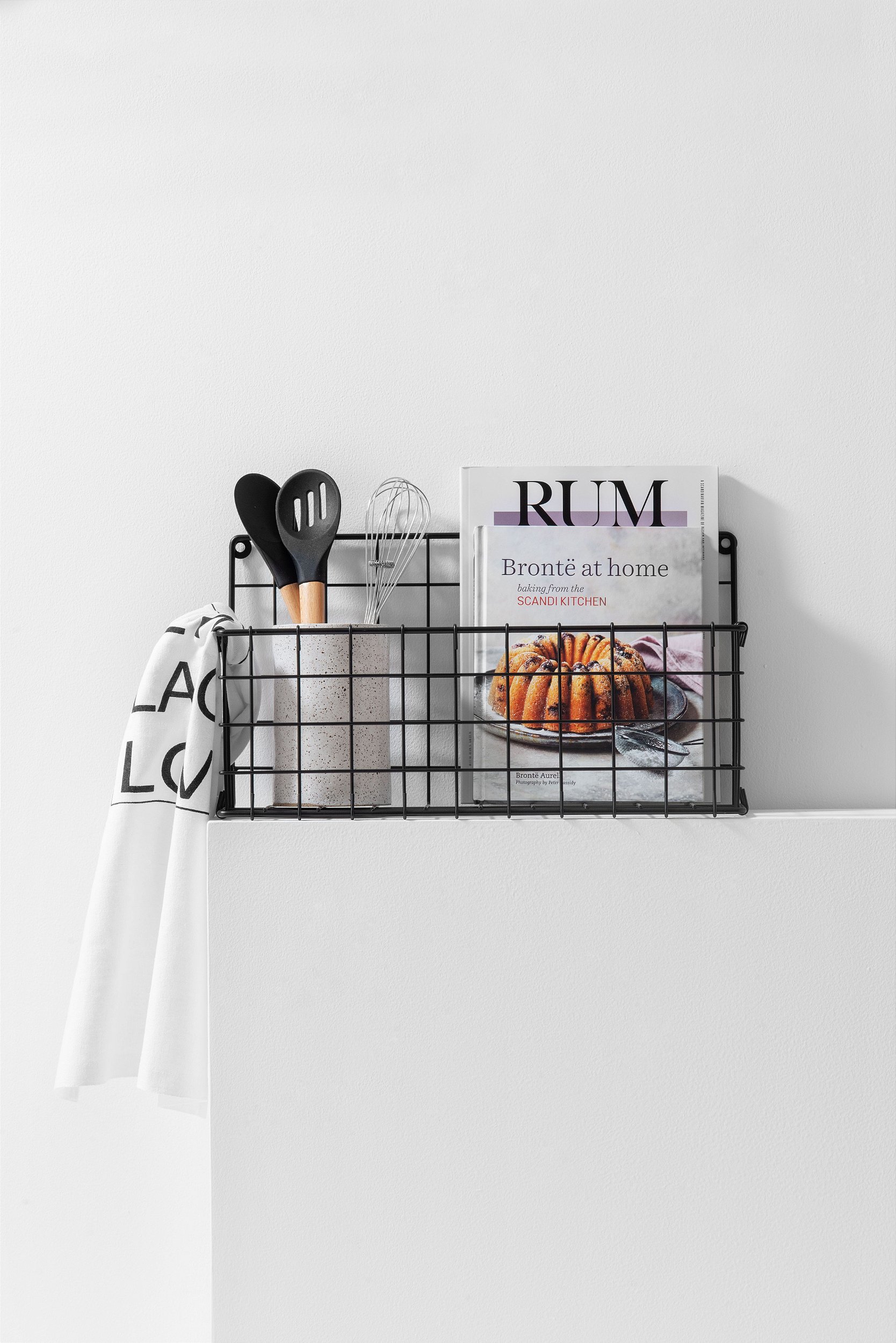 cesta organizadora para parede. de metal, segue a linha industrial e comporta itens diversos para manter tudo charmoso!