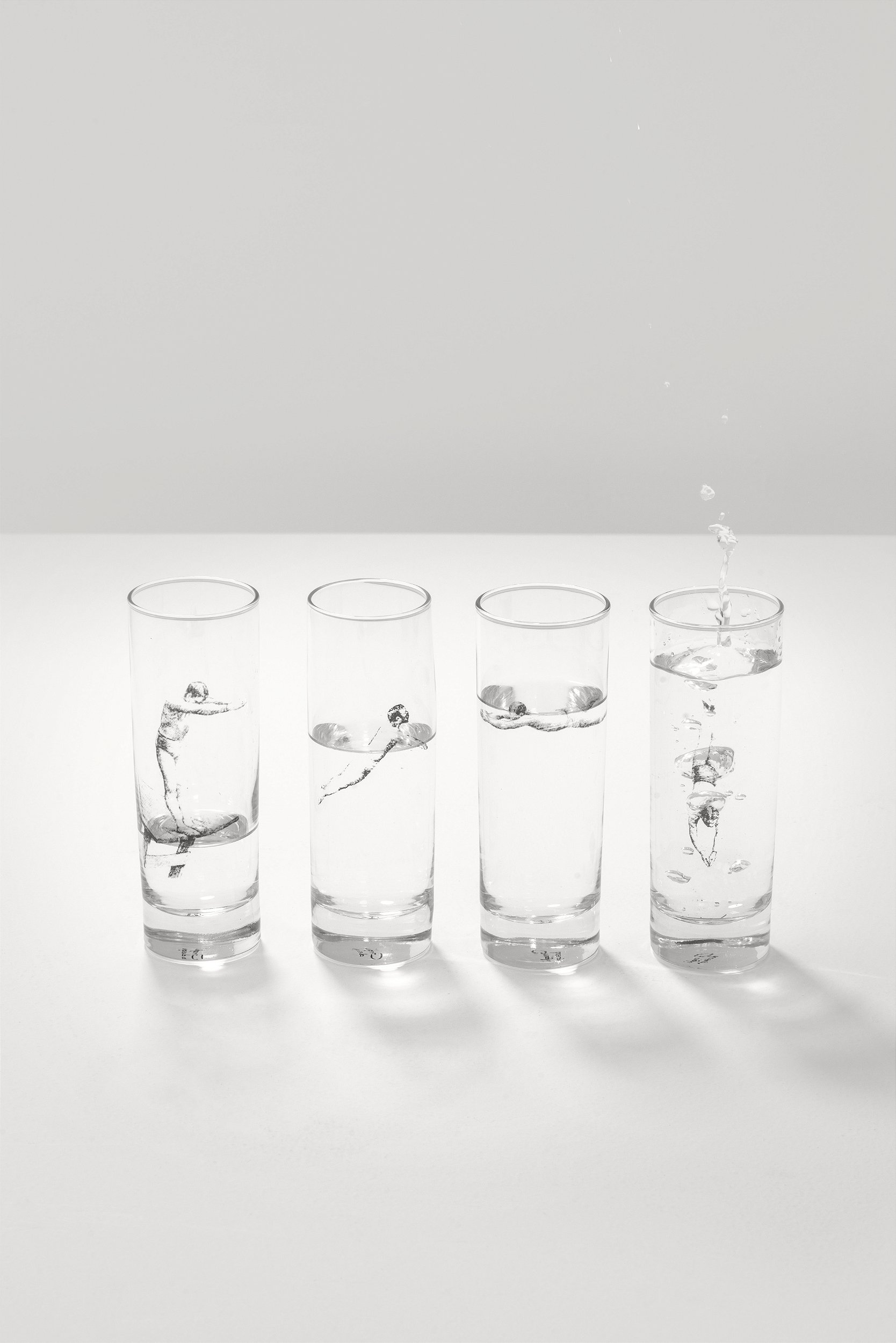 conjunto de quatro copos long drink perfeito, sem defeitos! para almas criativas e que adoram uma pitada de ousadia e diversão. cada copo leva uma ilustração diferente, dentro da temática do "mergulho" e você pode se divertir preparando diferentes bedidas sozinho ou acompanhado.