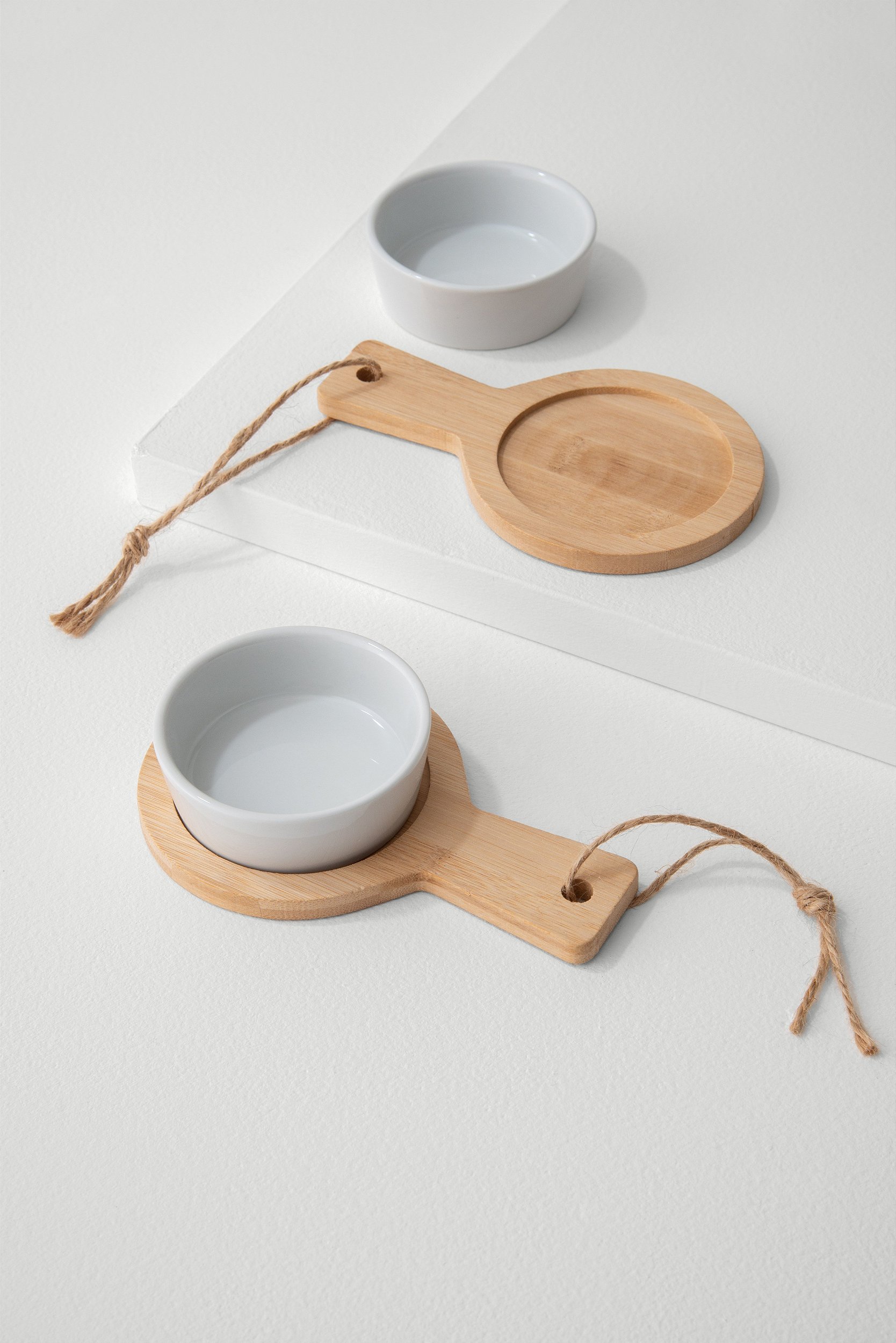 para pequenos snacks doces ou salgados, a dupla de petisqueiras easy é daquelas escolhas fáceis de se fazer. formada por quatro peças, duas bandejinhas de bambu e duas molheiras de porcelana, é ótima para servir e compor a mesa.