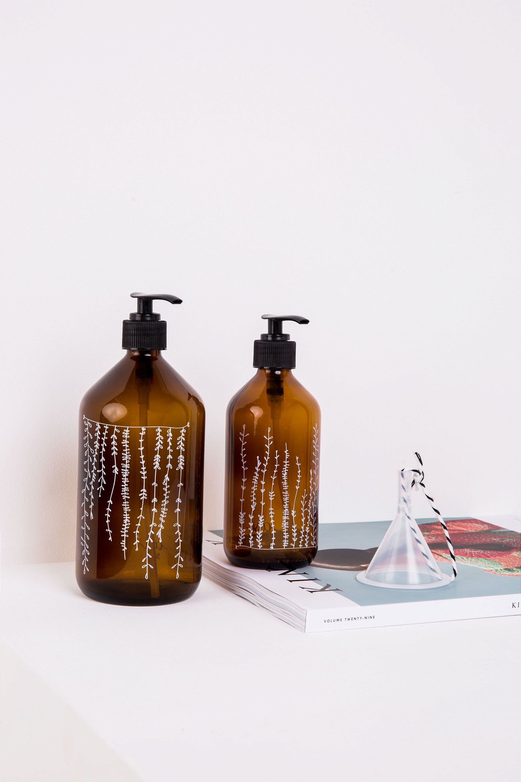 de vidro e estampa delicada o jogo de dispensers leaf é a peça ideal para tornar banheiros, lavabos e até mesmo cozinhas mais charmosos. use com shampoo e condicionador, sabonete líquido e hidratante ou ainda detergente e sabonete líquido! junto com o kit vai também um funil para facilitar o seu dia a dia.