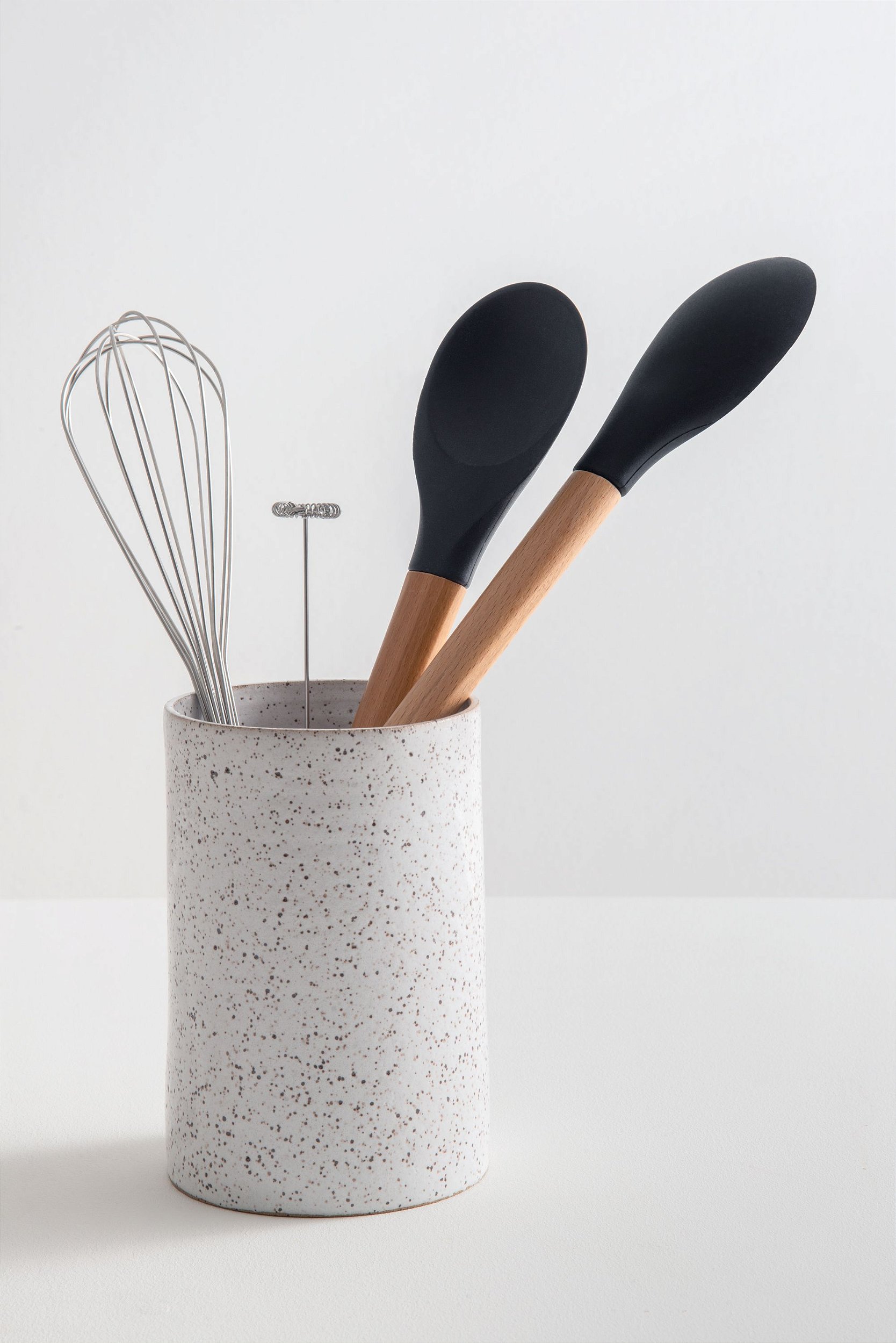 um lugar para manter a praticidade e a organização na cozinha. o porta utensílios olíe é perfeito para guardar seus pertences e tê-los sempre à mão quando precisar. lindo e todo charmoso, pode também ser usado para flores e arranjos trazendo mais alegria e inspiração para o dia a dia. possui acabamento em grés, é esmaltado e queimado em alta temperatura, conferindo à peça maior qualidade, resistência e durabilidade.
