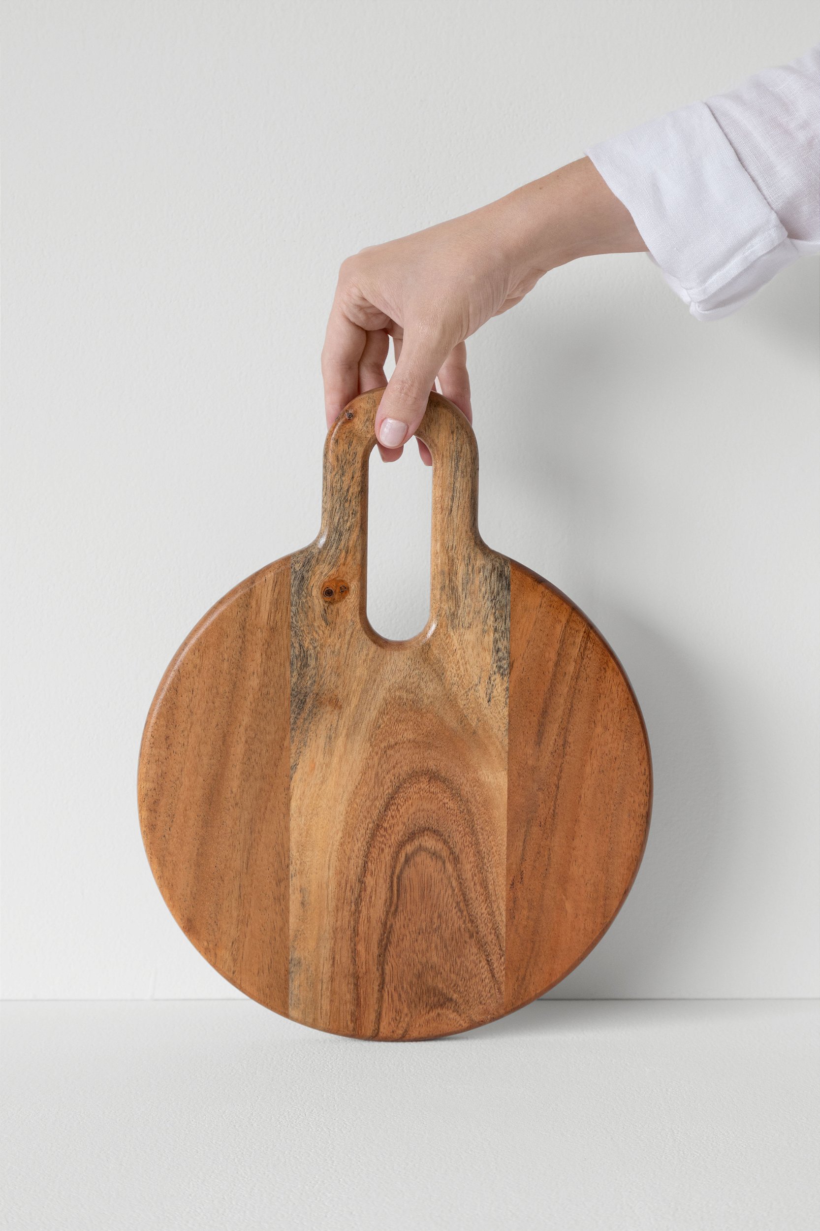perfeita para servir, nossa tábua de madeira redonda é elegante e funcional. possui detalhe de charme na pega, acabamento liso, com tons e veios característicos e pode ser usada com apertivos diversos e também para decorar. fica incrível quando em composição com a versão retangular.