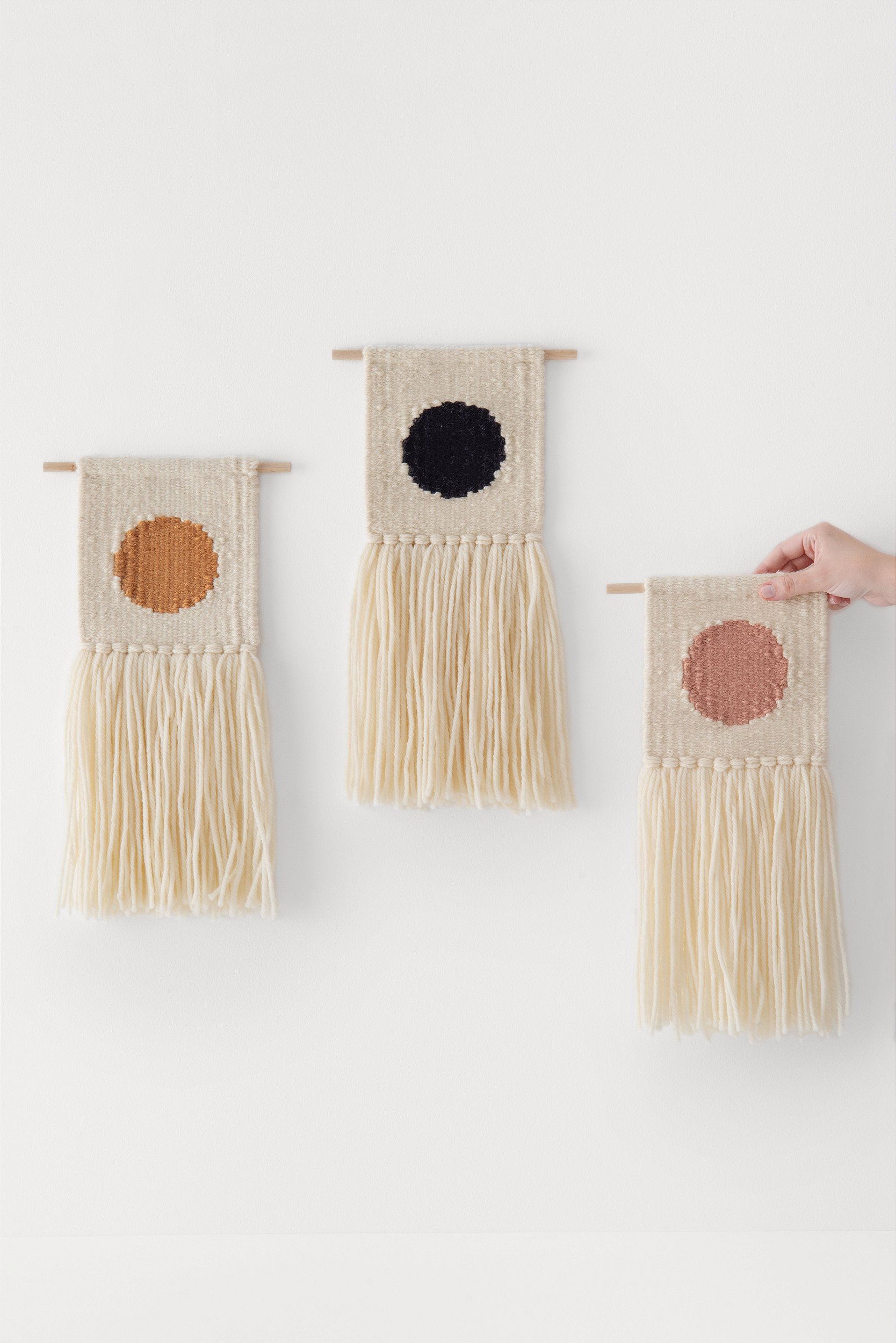 sobre pequenos charmes que que simplesmente roubam a cena! a tapeçaria franjuda é daquelas peças especiais que combinam com tudo. ficam bem usadas individualmente ou em uma composição com as demais peças da linha ou ainda em uma belo gallery wall. feita de forma 100% artesanal, em lã, possui um ponto de cor em três possíveis variações: rosé, palha e preto.