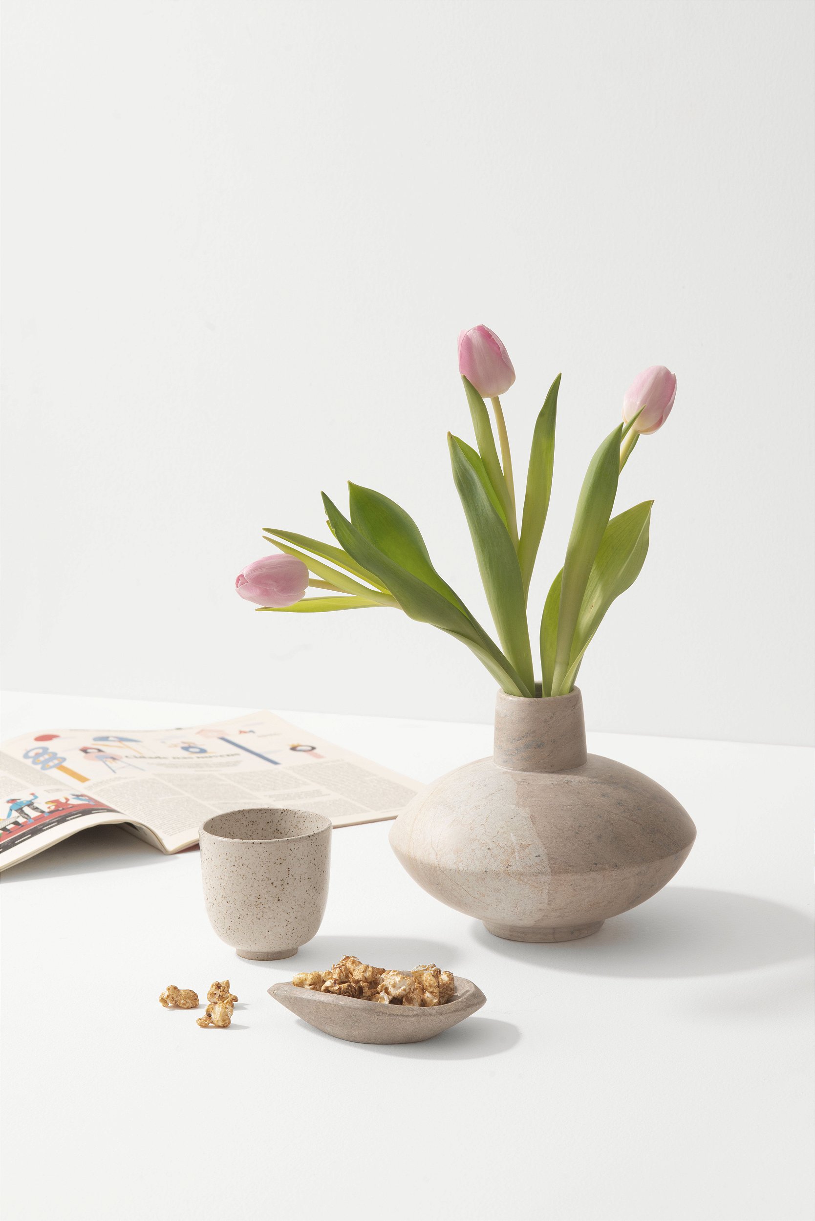 um vaso bem deuso, cheio de presença e com design todo diferente. esse é o vaso juru, feito no brasil, de maneira artesanal, e em pedra sabão. perfeito para decorar, destacar e florir de maneira única.